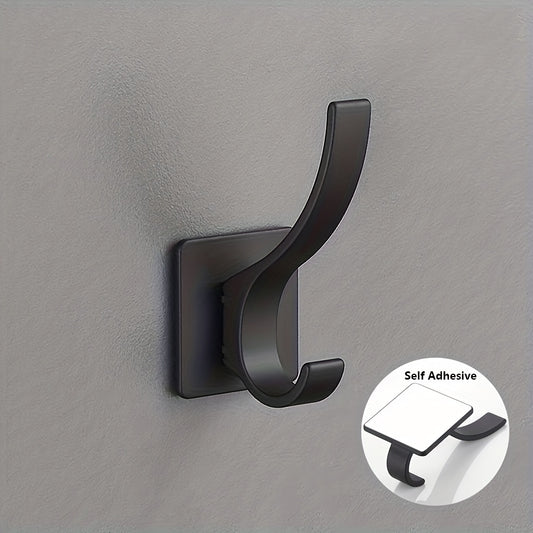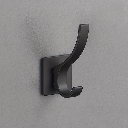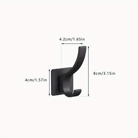4pcs Self Adhesive Hooks - No-Drill Wall-Mounted Towel & Robe Hangers, Space-Saving Aluminum Powder-Coated Black Hooks for Bathroom, Bedroom, Kitchen - Versatile Storage for Clothes, Hats, Towels, Bathroom Organization, Sleek