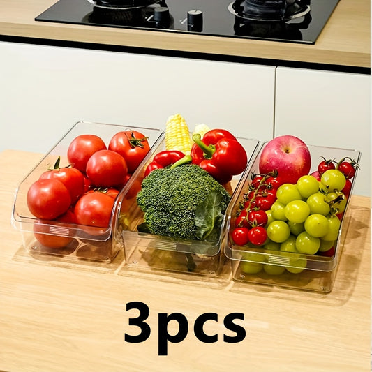 3pcs Large Capacity Refrigerator Replacement Storage Bins, Transparent Stackable PET Material, Suitable for Kitchen and Cabinet Drawer Open Top Containers, Multipurpose Organizer Box for Fruits, Snacks, Dry Goods, Cosmetics,