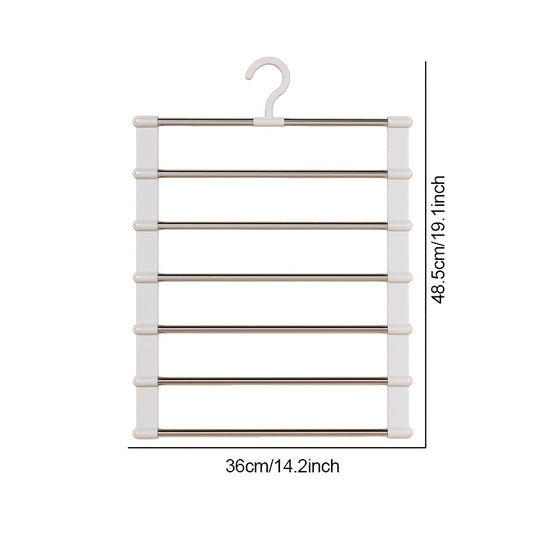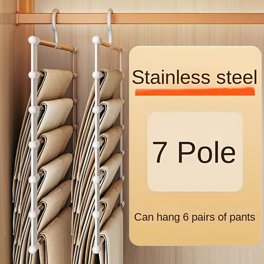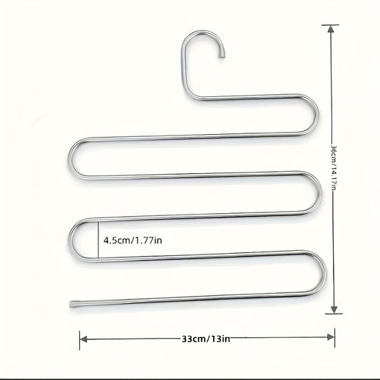 5-Tier Stainless Steel S-Shaped Pants Hanger - Non-Slip, Space-Saving Multi-Layer Jeans and Trousers Organizer with Polished Finish, Durable Metal Wardrobe Storage Solution for Neat Closet Organization