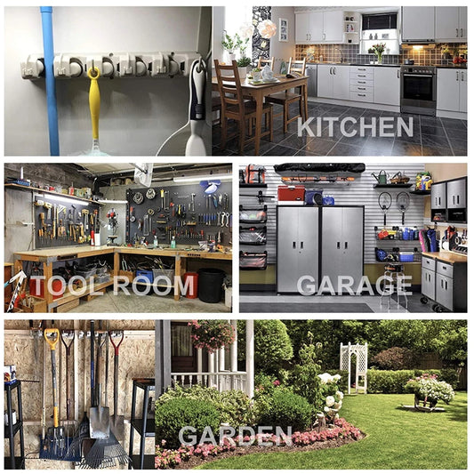 5 Position Wall Mounted Tool Organizer 6 Hooks Broom Mop Holder Tidy Organizer for Kitchen Living Room Garage & Bathroom