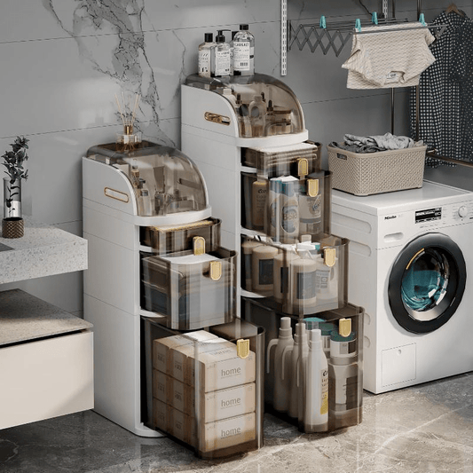4-Tier Ultra-Thin Bathroom Storage Cabinet, Narrow Space Mobile Organizer with Wheels for Small Kitchens and Living Rooms
