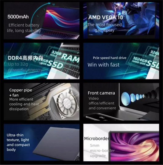 15.6" Gaming Laptop AMD-Ryzen 7 Laptop 32GB DDR4 RAM 512GB NVMe SSD Portable Notebook Laptop