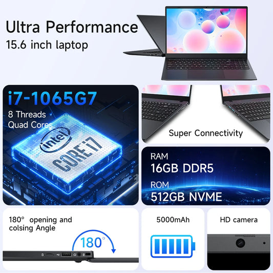 16GB RAM 512GB Ssd 1TB Intel I5 Laptop Computer 2.0MP hd 1080P 15.6inch IPS Laptop Business Cheap Gaming Laptop