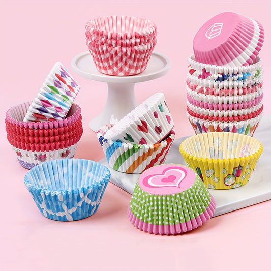 100pcs, Disposable Muffin Cups, Colorful Pattern Cupcake Cups, Greaseproof Paper Cupcake Liners, Muffin Molds, Baking Tools, Kitchen Gadgets, Kitchen Accessories