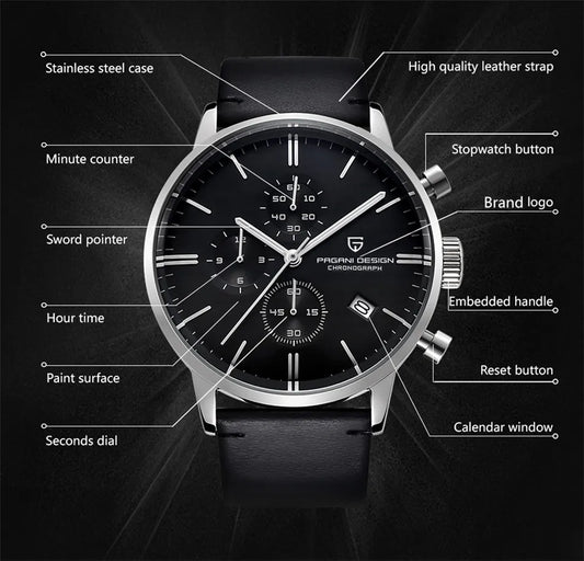 PAGRNE DESIGN Quartz Watches Multi functional chronograph 44mm Fashionable men's watch PAGANI DESIGN Extended Brand PG5140