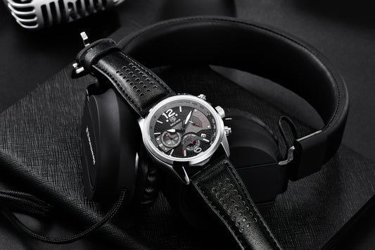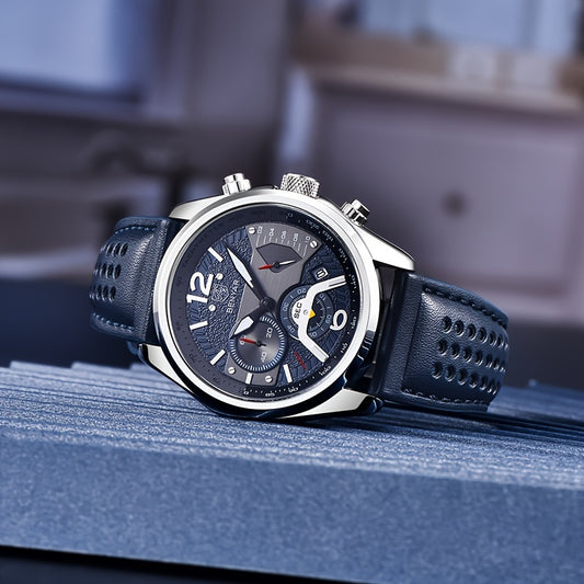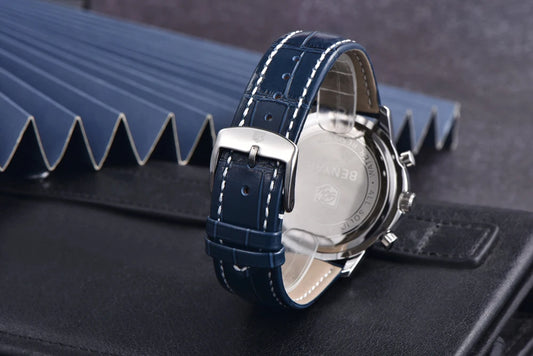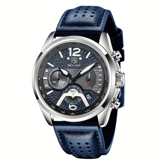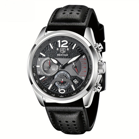 BENYAR Men's Quartz Chronograph Watch with Faux Leather Strap, 30m Waterproof, Fashionable Sport and Business Design, Elegant Gift for Men, Multifunctional, Calendar