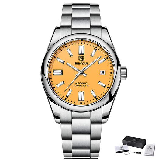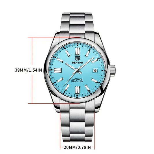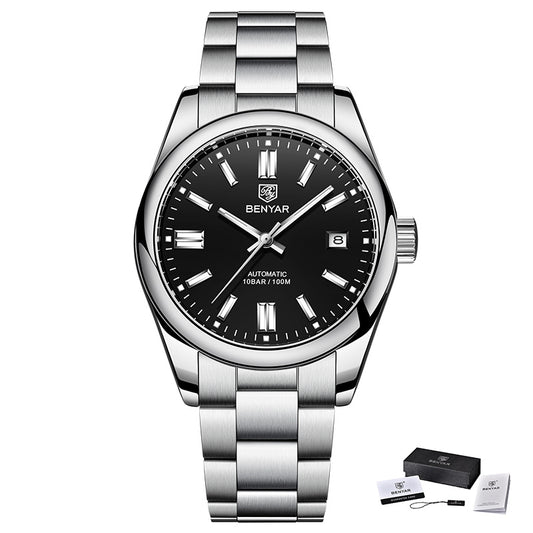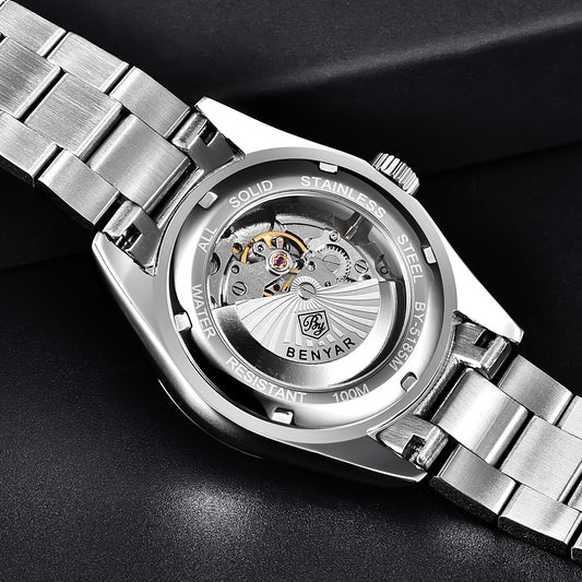 1pc BENYAR Men's Mechanical Wristwatch, 10Bar Waterproof Automatic Watch, Stainless Steel Sports Diving Watch For Men, Ideal choice for Gifts
