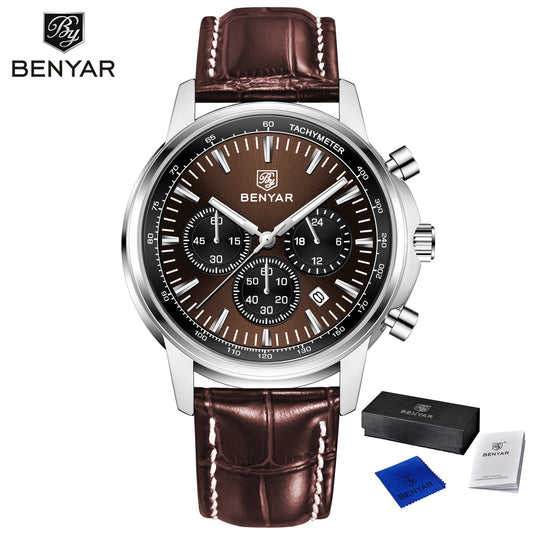 2025 New BENYAR Men's Watches Top Brand Luxury Watch For Men Chronograph Quartz Wristwatch Clock Waterproof Leather Reloj Hombre