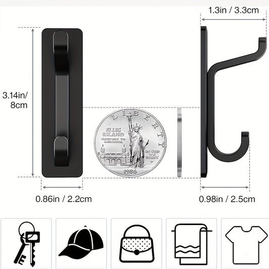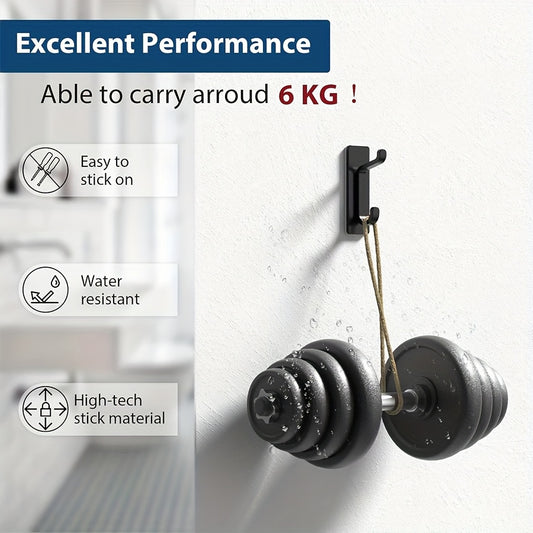 12pcs Self-Adhesive Hooks, Ultra-Strong Adhesive Hooks, Holds Up to 6kg, Heavy-Duty Wall Door Bar for Bathroom Shower Kitchen Towel Coat Hat Wallet, Black, 12-Pack
