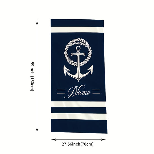 1pc Customizable Nautical Anchor Stripe Microfiber Beach Towel, Quick-Dry Soft Absorbent Knit Fabric, Machine Washable, Coastal Theme for Surfing Swimming Camping, 250gsm Polyester, Beach Essentials|Nautical Design|Quickdry M