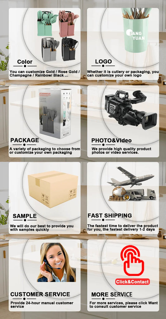 15 Pieces High Quality Chef Knife Set with Wooden Block, Non-slip Hollow Handle for Kitchen Scissor