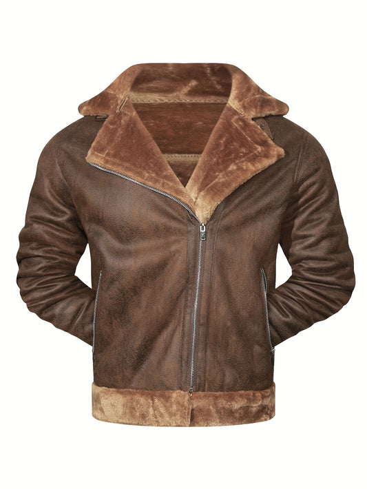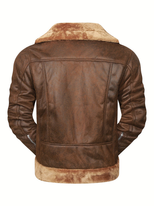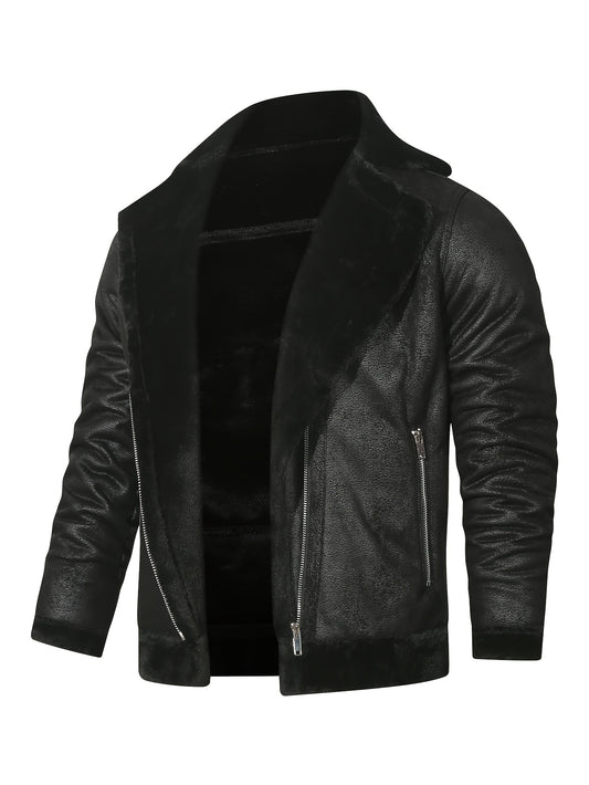 Men's Pu Jacket, Chic Faux Leather Jacket For Fall Winter