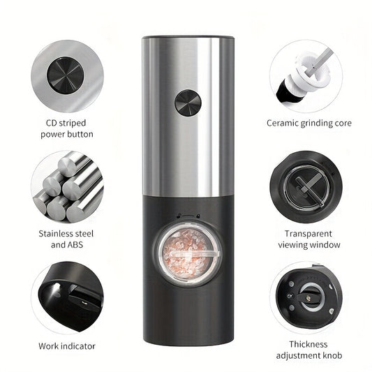 1pc Electric Salt And Pepper Grinder With Adjustable Coarseness Refillable, Pepper Mill, Battery Powered, Kitchen Automatic Grinder, Kitchen Gadgets