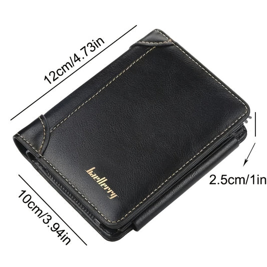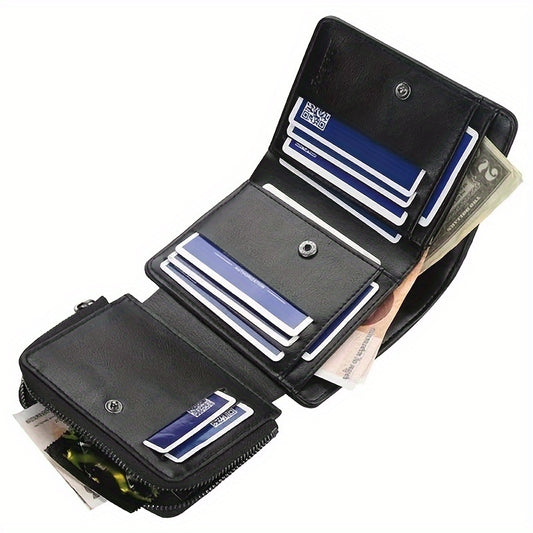 1pc Men's Short Multi-Card Slots Three-fold Zipper Coin Pocket Wallet Fashion Thin Card Bag Give Gifts To Men On Valentine's Day