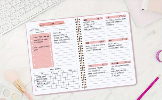 1pc Trees Spiral Undated A5 Daily Weekly Notebook Planner Agenda, Stationery Office School Supplies, Record Daily Plans To Achieve Future Goals, 21.08*13.97 Cm, 52 Sheets