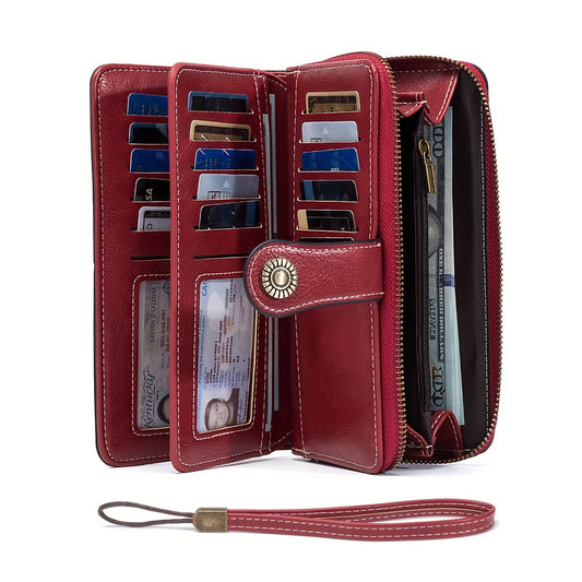 RFID Blocking Long Wallet With Wristlet, Retro Style Faux Leather Wallet With Multi Card Slots & Id Window