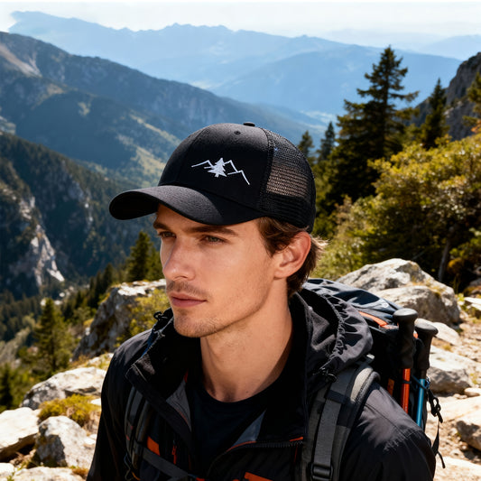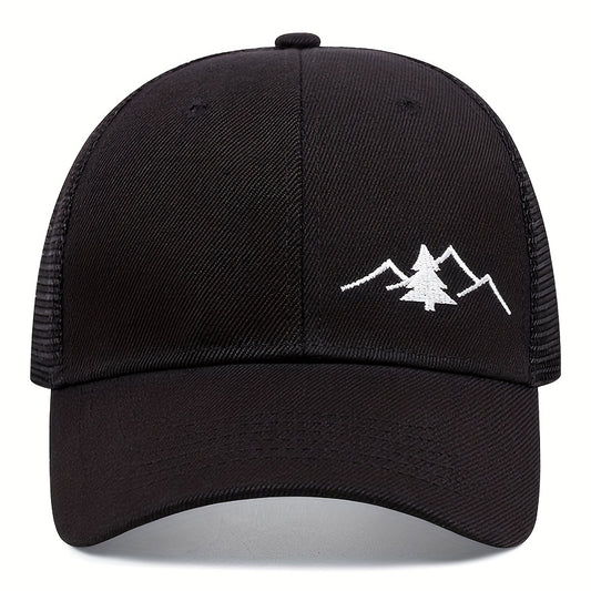 Vintage Pine Tree Embroidered Trucker Cap, Retro Washed Mesh Hat, Outdoor Forest Style Baseball Cap for Men and Women