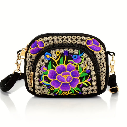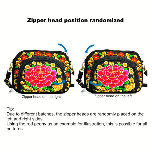 Vibrant Floral Embroidered Crossbody Bag for Women - Lightweight, Double-Sided Design with Detachable Strap, Zipper Closure, and Phone Pocket - Perfect for Casual Outings, Travel Accessory | Vibrant Pattern Bag | Coin Purse