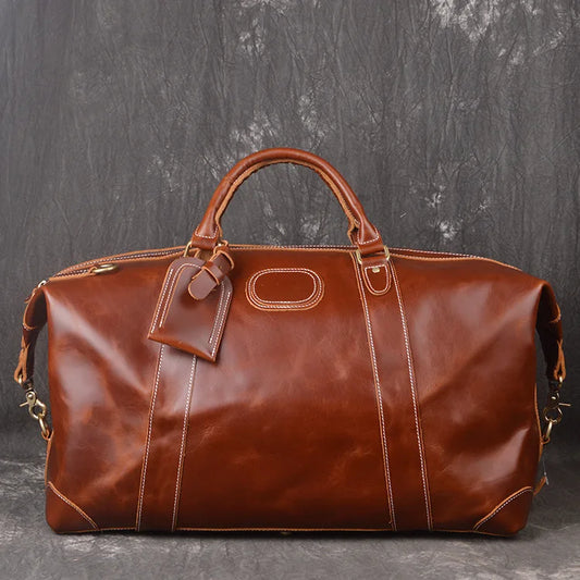 Vintage Leather Travel Bag Genuine Leather Holdall Leather Weekender Duffel Bag for Overnight
