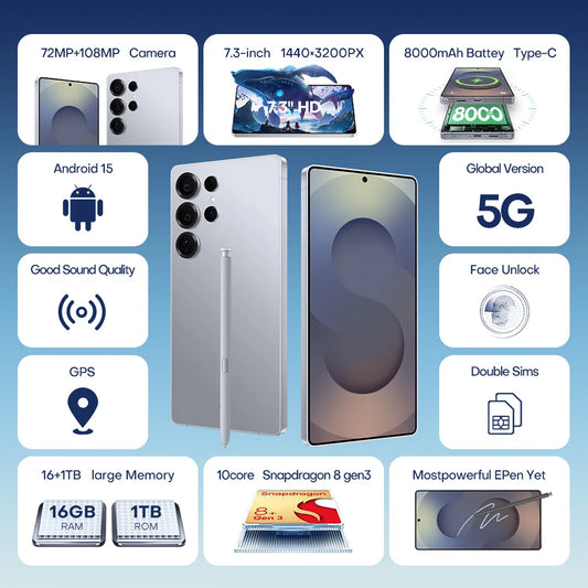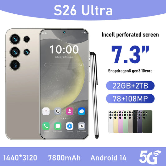 2025 New S26 Ultra Android 14 5G Smartphone 16+1TB 4G 5G 7.3inch HD Screen 72+108MP Dual Card Cell Mobile Phone