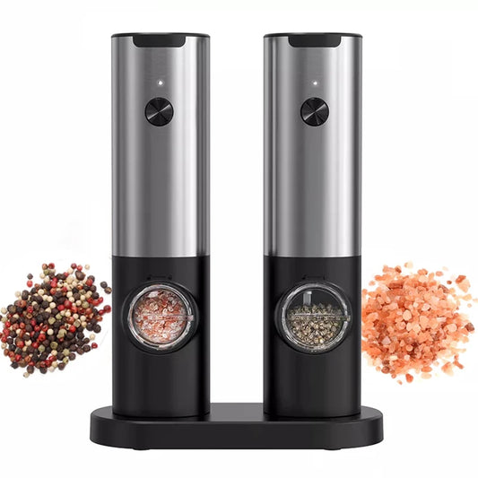 2022 New 2pcs Adjustable Coarseness Rechargeable Stainless Steel Gravity Electric Salt and Pepper Grinder Set with LED Light