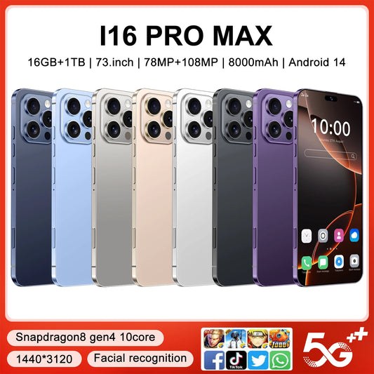 2025 Original High Quality I16pro Max 16GB+1TB Android 14 5G Smart Phone Globally Compatible 108MP Rear Camera