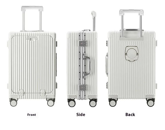 2024 New Design Front Open Carry on Luggage Lightweight Hard Side Suitcase Travel Luggage With USB Charger and Cup Holder