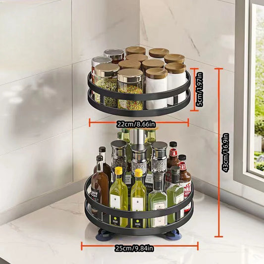 2/3 Tiers Carbon Steel Kitchen Revolving Tray Organizer 360° Rotating Turntable Spice Rack Multifunctional Home Storage Cabinet