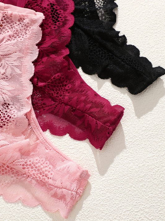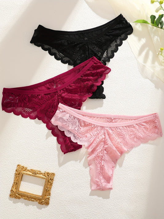 3pcs Women's Lace Trim Sexy Sheer Thong Set, Intimate Wear, Thong Collection, Feminine Lingerie, Elegant Thongs, Soft Lace, Comfortable Fit, Vstring Panties, Lowrise Underwear, Sensual Undergarments, Lingerie Lovers