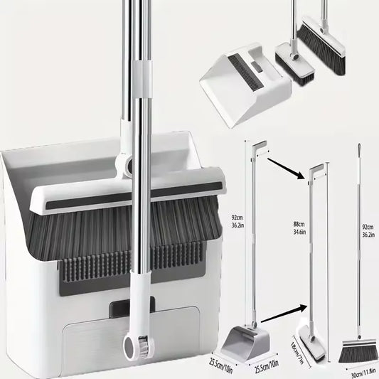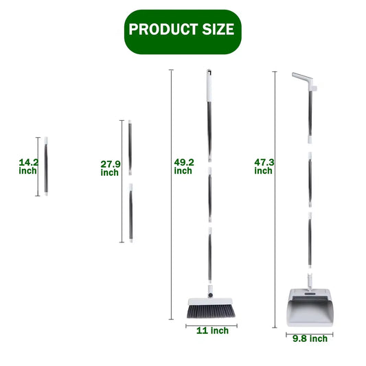 3 in 1 Broom with Dustpan Combo Set with Dust Pan Adjustable Long Handle Broom and Dustpan Set for Sweeping Gray