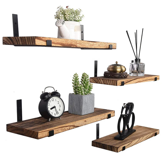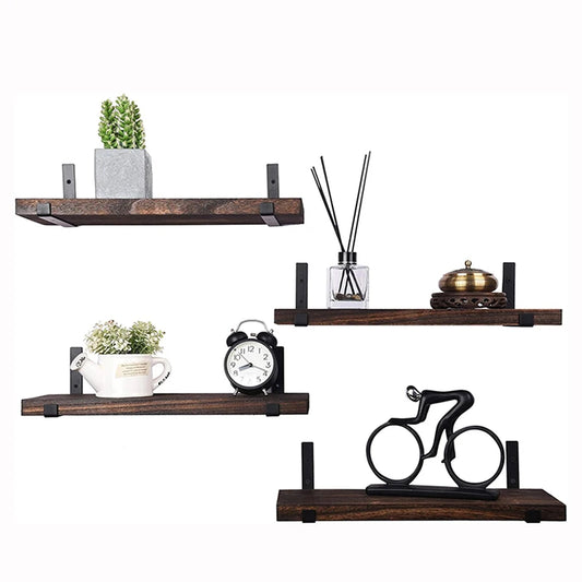 Country Style 4-Piece Set of Wooden Floating Shelf Wall Decoration Frames for Bathroom Kitchen Bedroom Living Room