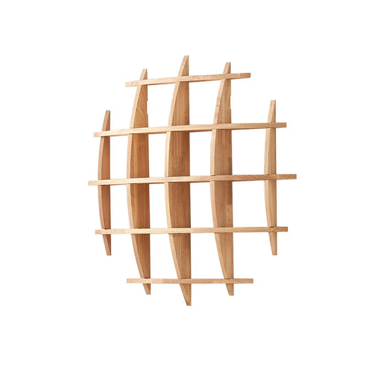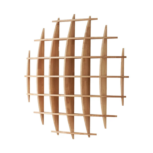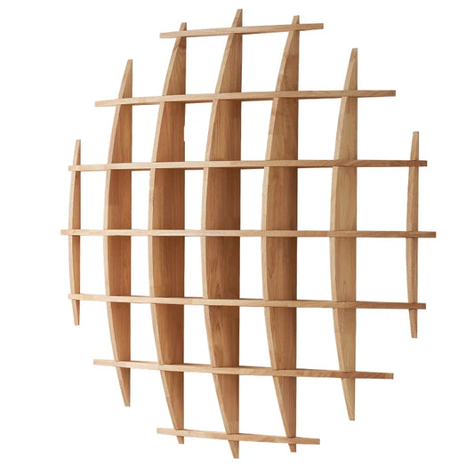 Custom Round Wall Mounted Curio Shelf - Chinese Style Solid Rubber Wood Display Rack for Tea Set/Living Room Decor