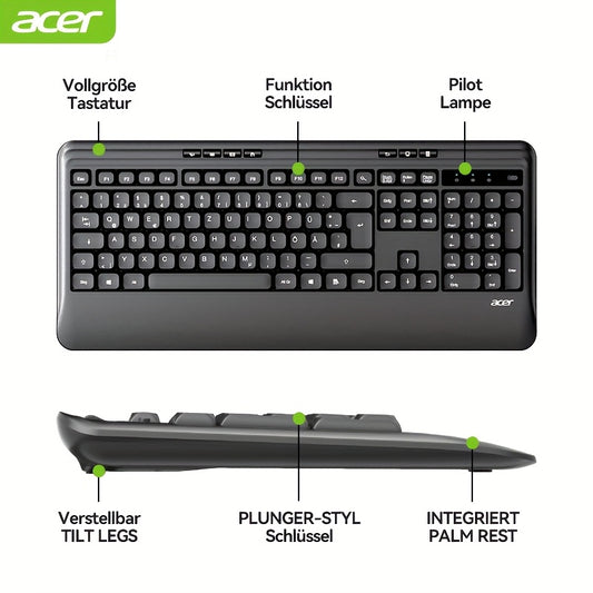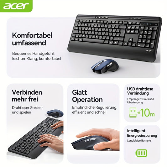 ACER QWERTZ Teclado e Rato Sem Fios com Apoio de Pulso – Preto
