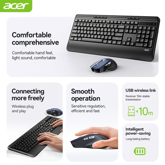 Acer Teclado e Rato Sem Fios 2.4GHz – Combo Completo