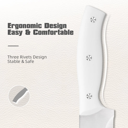 15 Pieces White Carbon Steel Blade Kitchen Knife Set with Real Wooden Stand, Inner Sharpener, and Kitchen Scissors