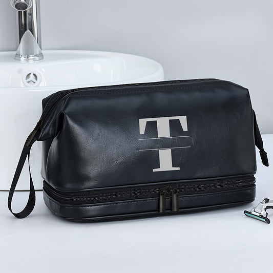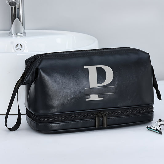 Customized Men's Fashion Travel Toiletry Bag PU Large Letter Toiletry Bag