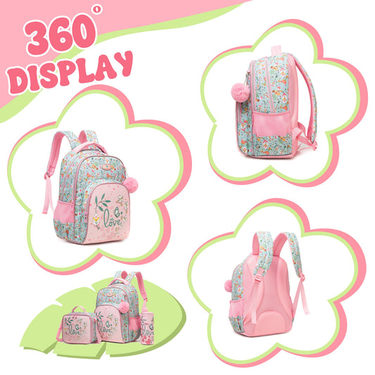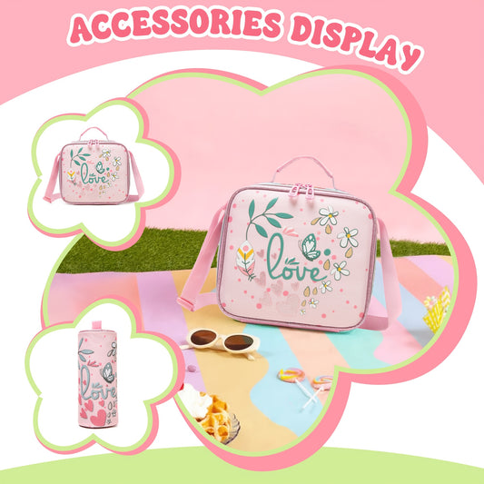 Adorable Girls Backpack 3pcs Set with Lunch Bag and Pencil Case Kids Carry On Backpack School Essentials Playdate Adventures Back to School Gift