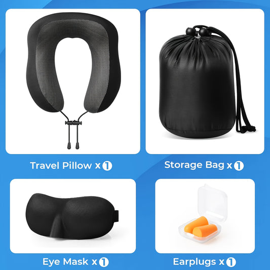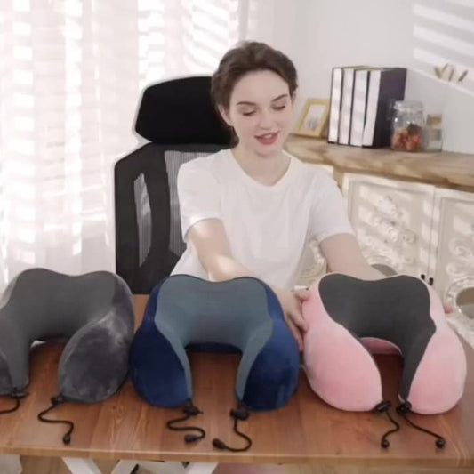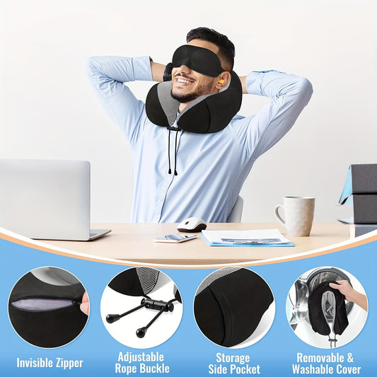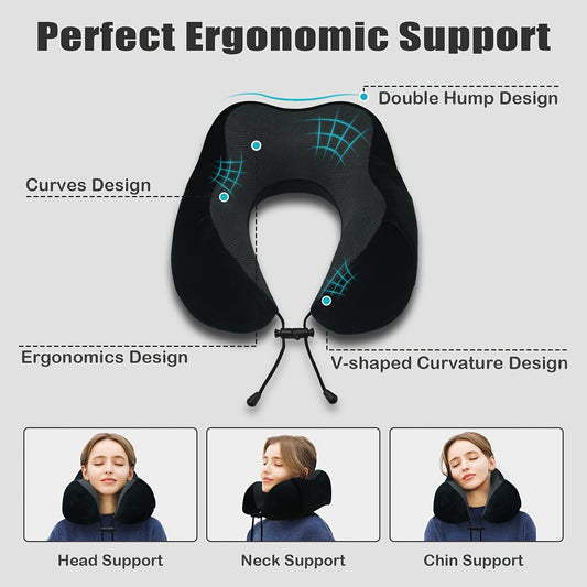 Ergonomic U-Shaped Neck Pillow with Storage Bag - Memory Foam Travel & Office Support, Removable & Machine-Washable Cover, Lightweight Portable Cervical Pillow for Airplane, Car, Bed - Compression-Fit Design for s (No Power R