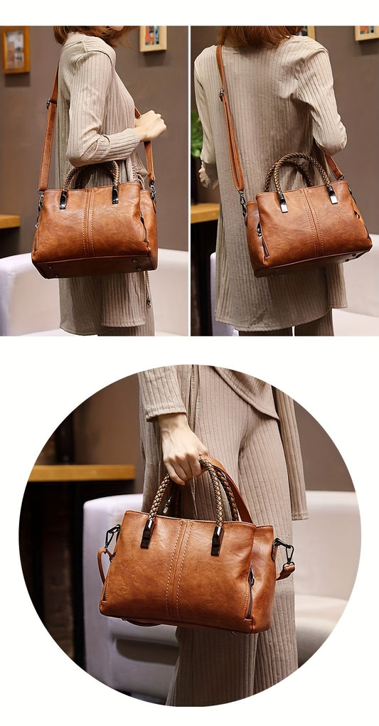 Four-piece Women'S Fashion Handbag Set, Premium Fabric Tote, Crossbody Bag, Clutch, Card Holder, Vintage Minimalist Commute Suitable for Various Occasions