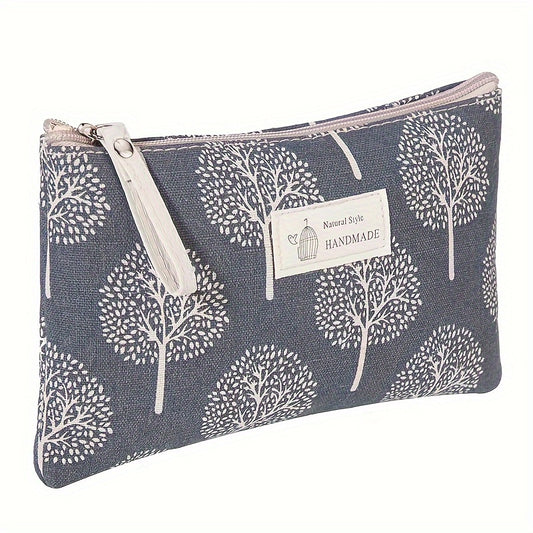 Casual Canvas Cosmetics Bag, Zipper Coin Purse, Portable Travel Storage Bag