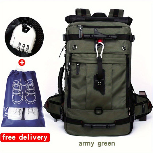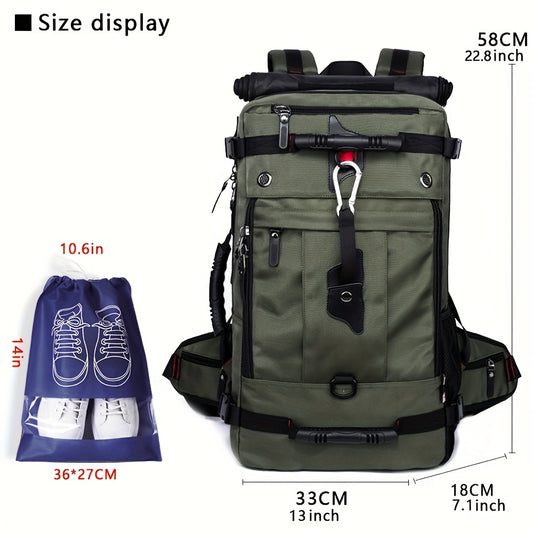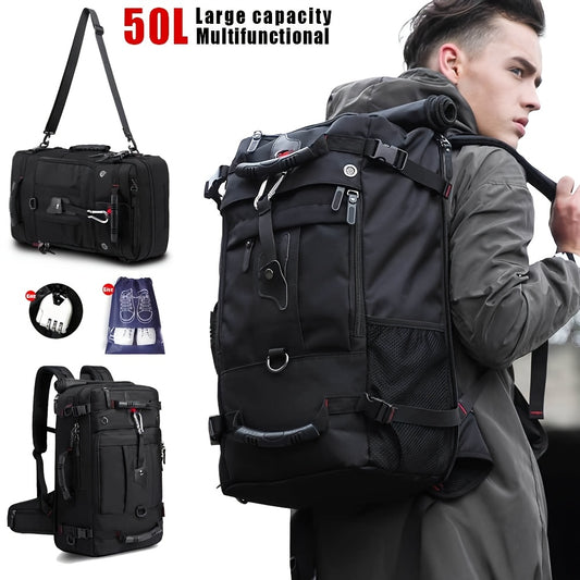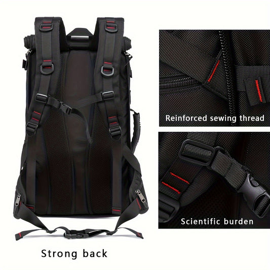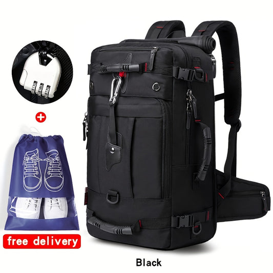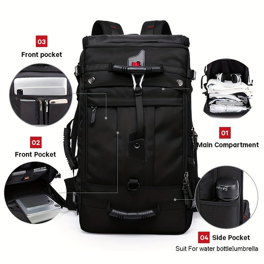 50L Large Capacity Convertible Backpack for Men - Black, Multi-Functional Hiking & Travel Bag with Laptop Compartment, Adjustable Straps, Durable Polyester Lining, Ideal for Outdoor Adventures, Sports, and Everyday Use, Trave