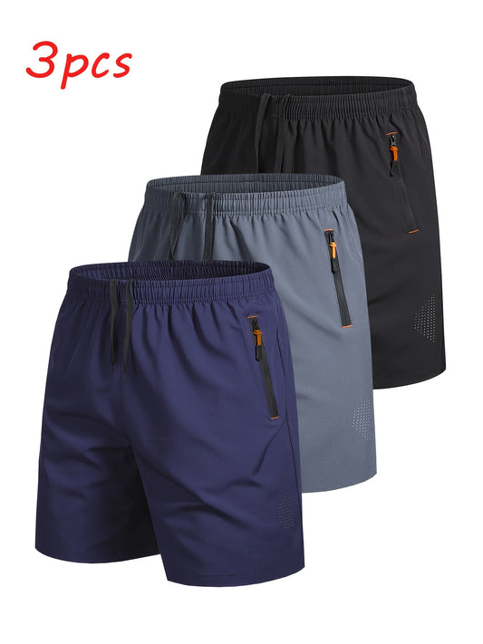 3pcs Men's Outdoor Sports Casual Shorts, Solid Color Zipper Pocket Running Fitness Quick- Breathable Athletic Shorts, Shorts For Men, Shorts For Men High Quality, Running Shorts Men, Gym Shorts Men, Workout Shorts, Sporty Des