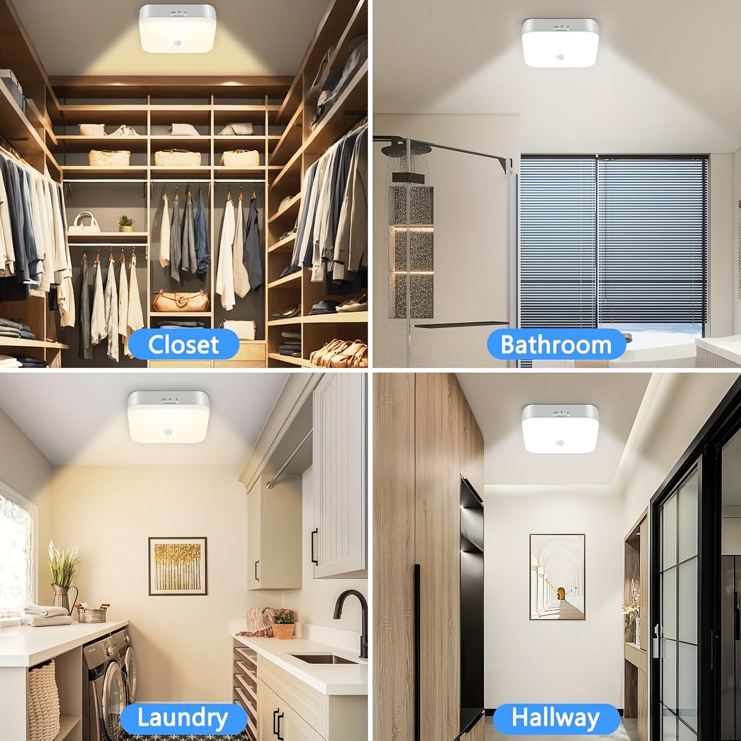 1 Modern Motion Sensor LED Ceiling Light, 500LM High Brightness 10000mAh Rechargeable Battery Powered Wireless, Day and Night Two Work Modes Motion Sensor Lamp, Suitable for Entrance, Kitchen, Stairs, Hallway, Pantry, Superma