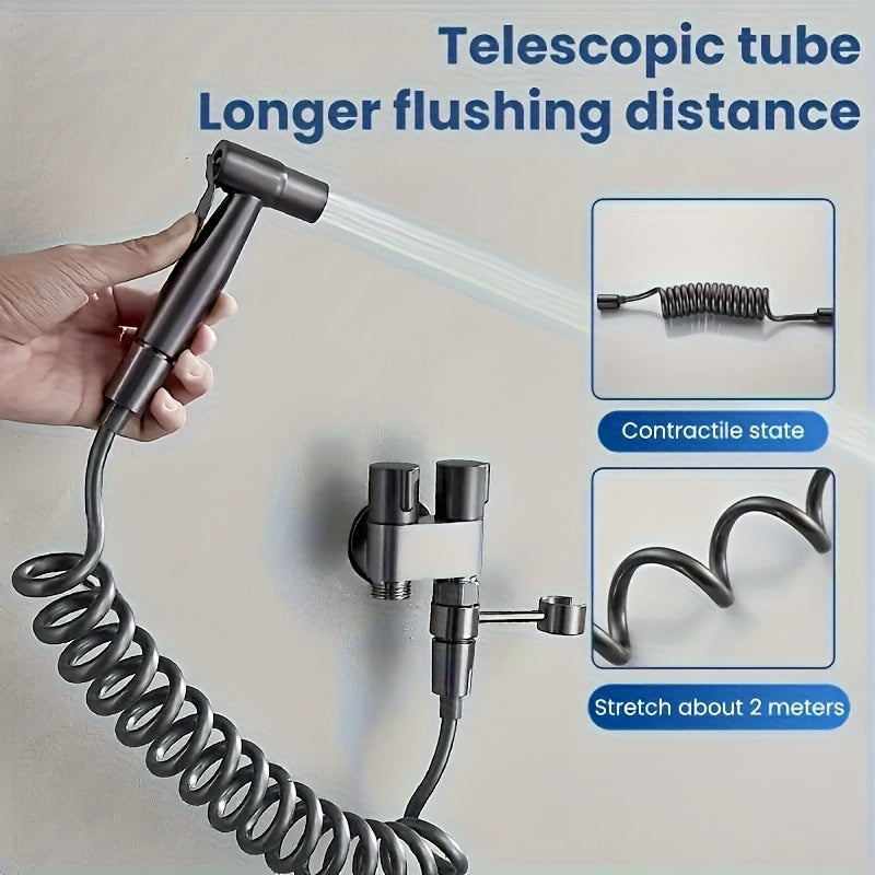 1 Wall Mount Hand Held Sitz Bath Kit, Classic Style, Brushed Finish, Comes with Spray Gun, Telescopic Phone Tube and Stand for Hygienic Toilet Training, Modern Sitz Bath System | Durable Wall Mount I toilet Spray Gun Set