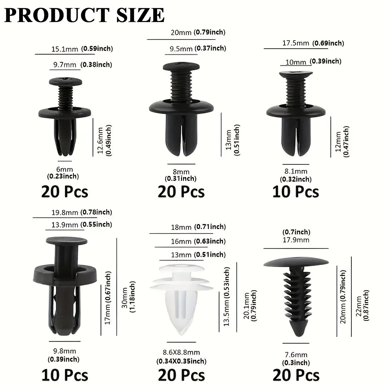105pcs/Set Car Retainer Clips Kit With Fastener Removers, Universal Car Bumper Clips And Fasteners Plastic Rivets, 6 Popular Sizes Of Car Body Fixed Clip Bumpers And Replacement Parts Of Car Fenders, Applicable To Most Models