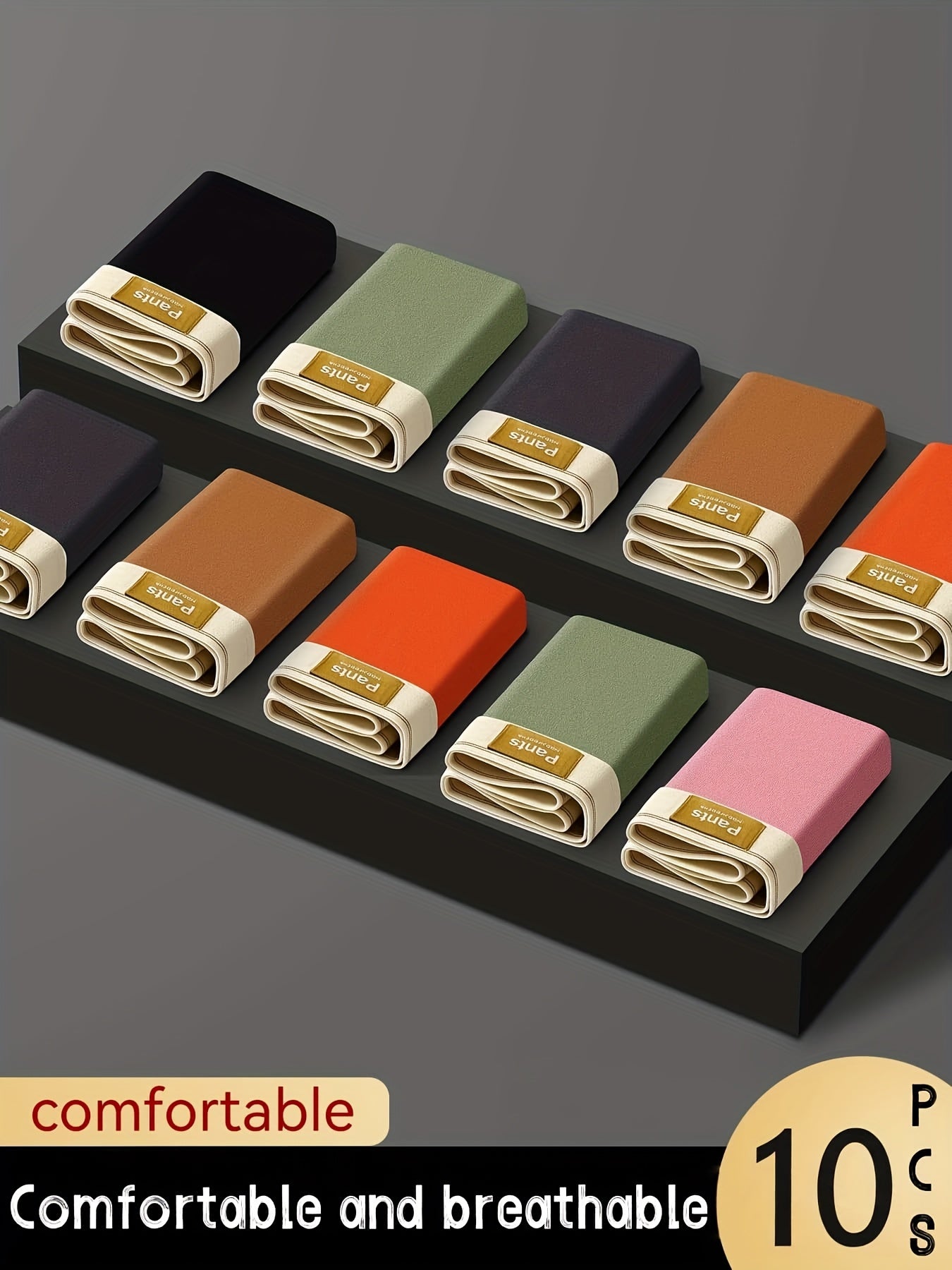 10pcs Men'S Boxer Briefs - Soft Breathable Underwear, Classic Fit, Multi-Color Pack (Black, Navy, Brown, Orange, Pink, Green, Beige, White, Gray, ) - Everyday & Formal Wear Essentials for Men & Teens - Bulk Discount, Boxer Sh