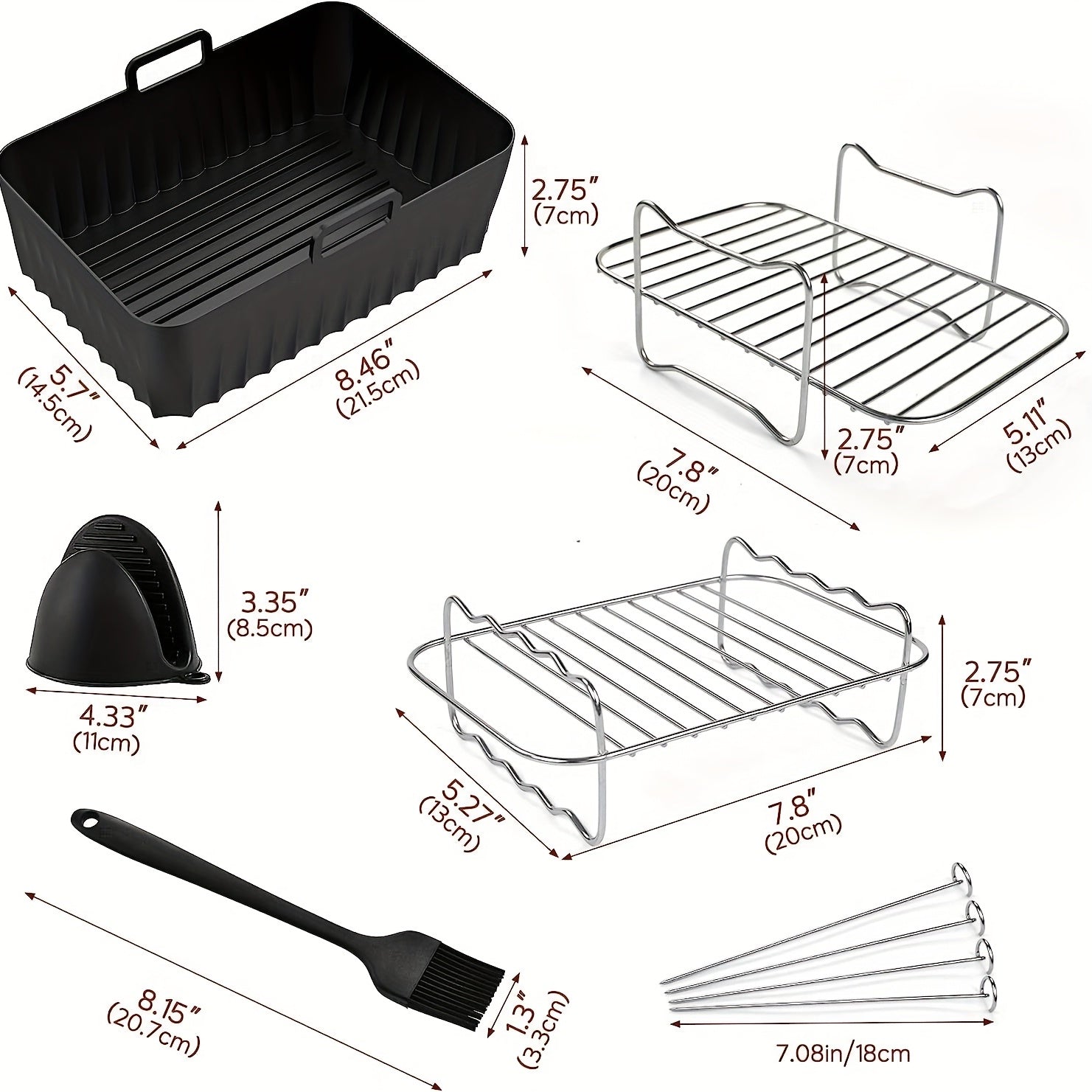 11pcs Air Fryer Accessories Kit - Perfect for Ninja Dual&Tower Air Fryer, Includes 2 Reusable Liners, 2 Racks, 4 Skewers, Silicone Gloves & Brush!