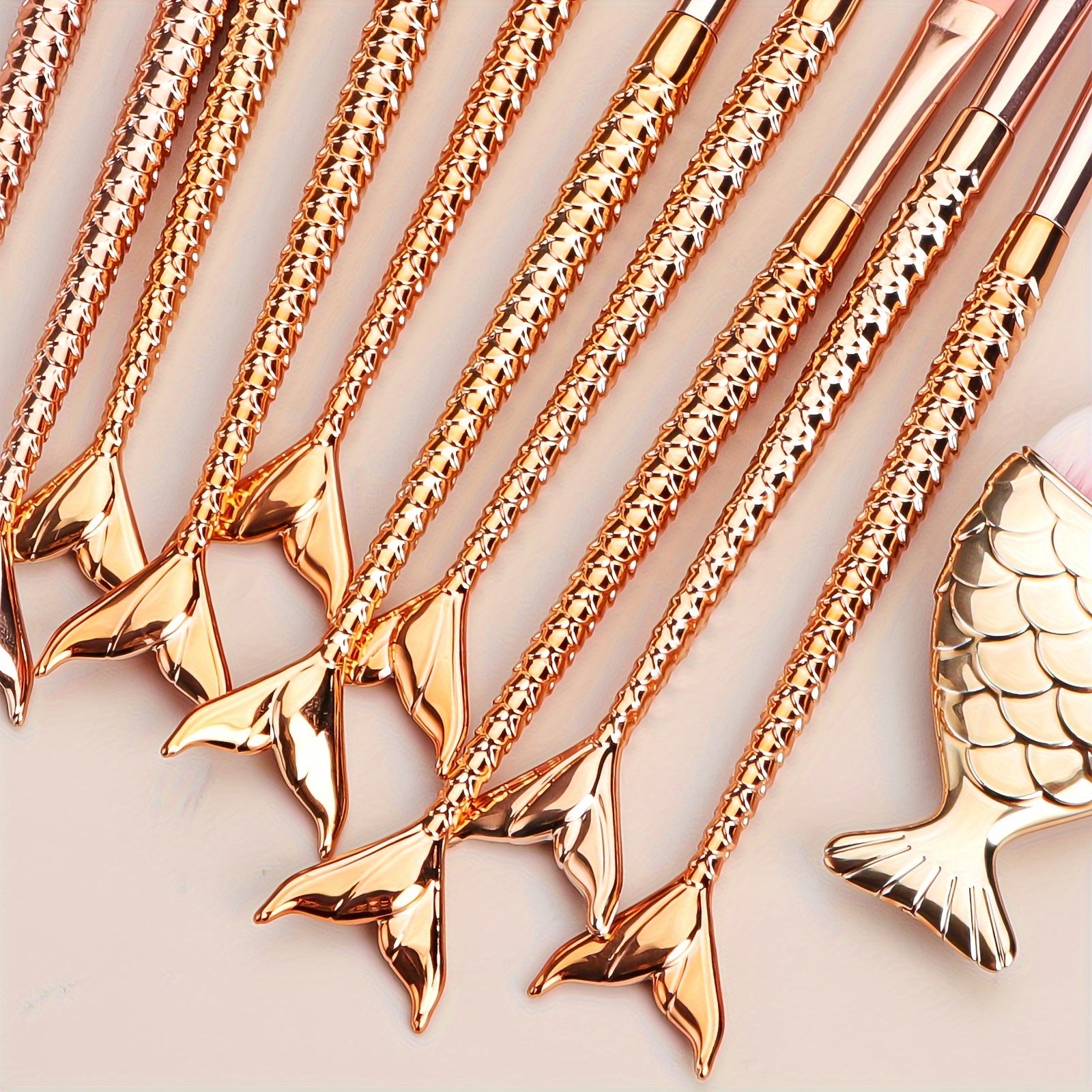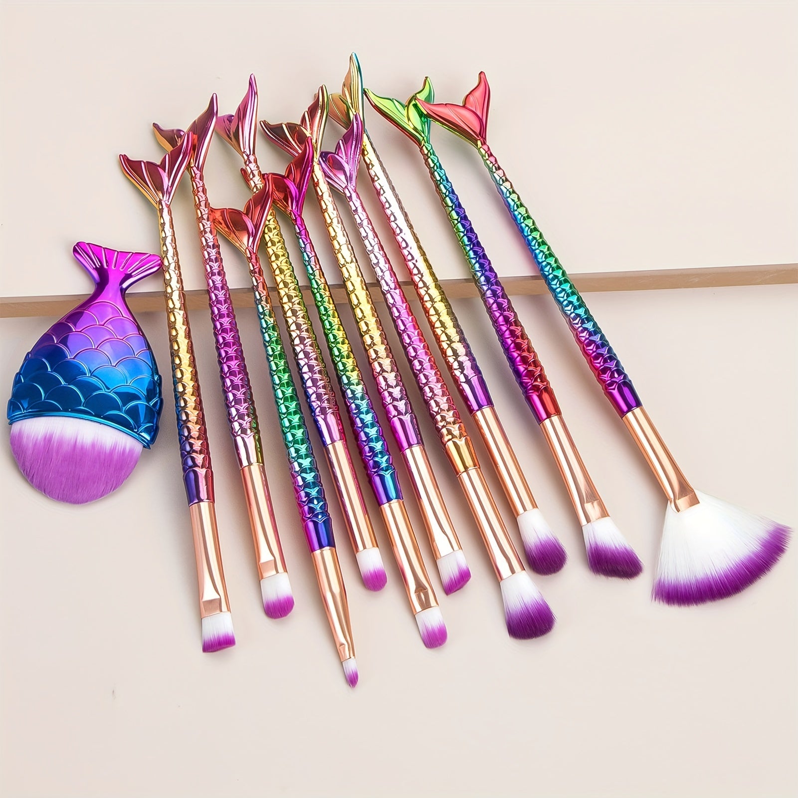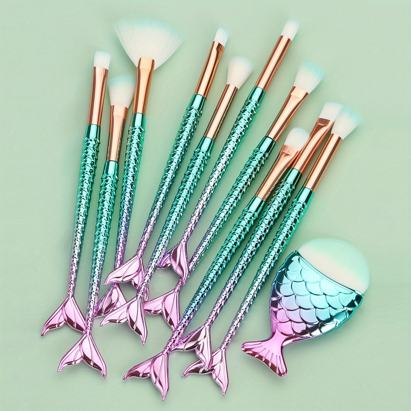 11pcs Mermaid Makeup Brush Set - Fish Tail Design, Nylon Bristles for All Skin Types, Fragrance-Free Beauty Tools