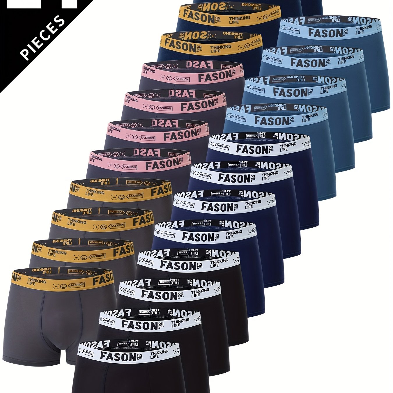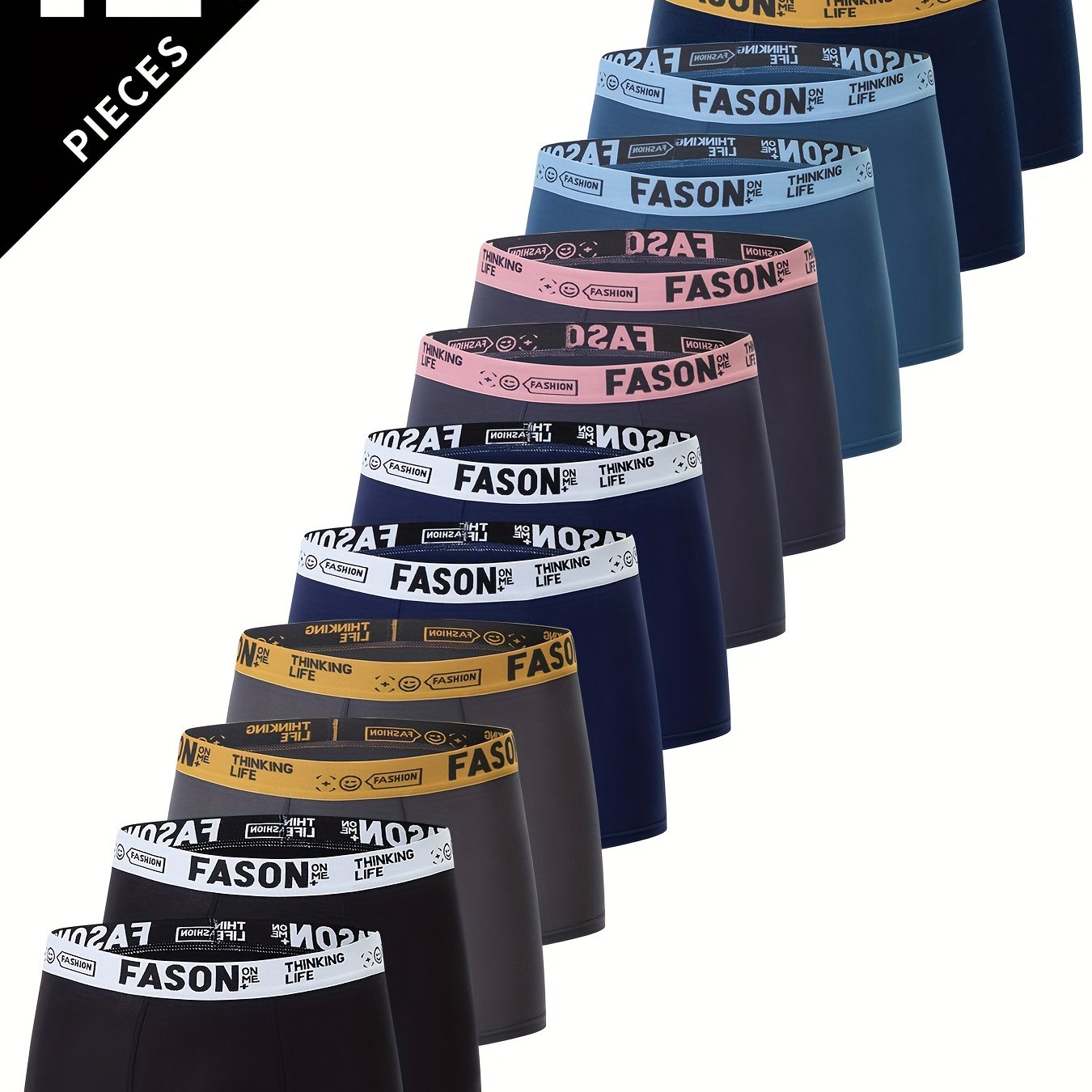 12/24pcs Men'S Boxer Briefs - Breathable, Comfortable, Stretchy Underwear with "FASON" Letter Print, Black, Casual Style, Comfortable Underwear | Stylish Boxers | Smooth Texture Fabric, Men'S Underwear, Boxer For Big Men, For