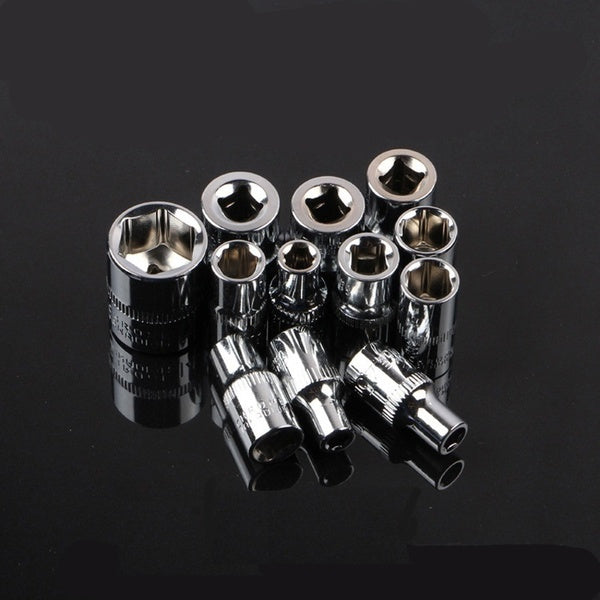12pcs Carbon Steel Socket Wrench Set, Multi-Functional Bicycle Repair Tool Kit, with Extension Bars and Ratchet Handle for Motorcycle, Car, Boat Maintenance